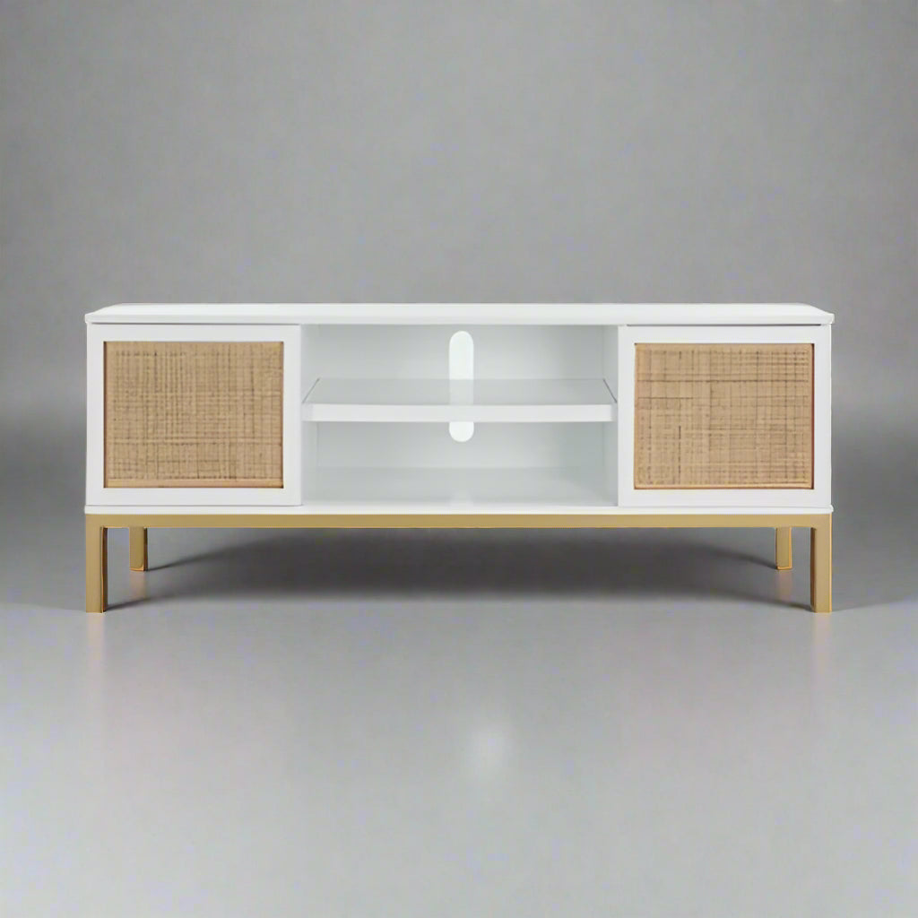 نقدم لك وحدة التحكم في الوسائط Arlow، وهي مزيج مثالي من التصميم العصري والأناقة الطبيعية. يتكامل الإطار الأنيق مع تفاصيل الروطان المنسوجة بدقة على بابيها، مما يضفي لمسة عضوية دقيقة على مساحة المعيشة الخاصة بك. مع وجود رفين واسعين، توفر وحدة التحكم في الوسائط هذه مساحة واسعة للإلكترونيات أو الديكور أو أساسيات التخزين.