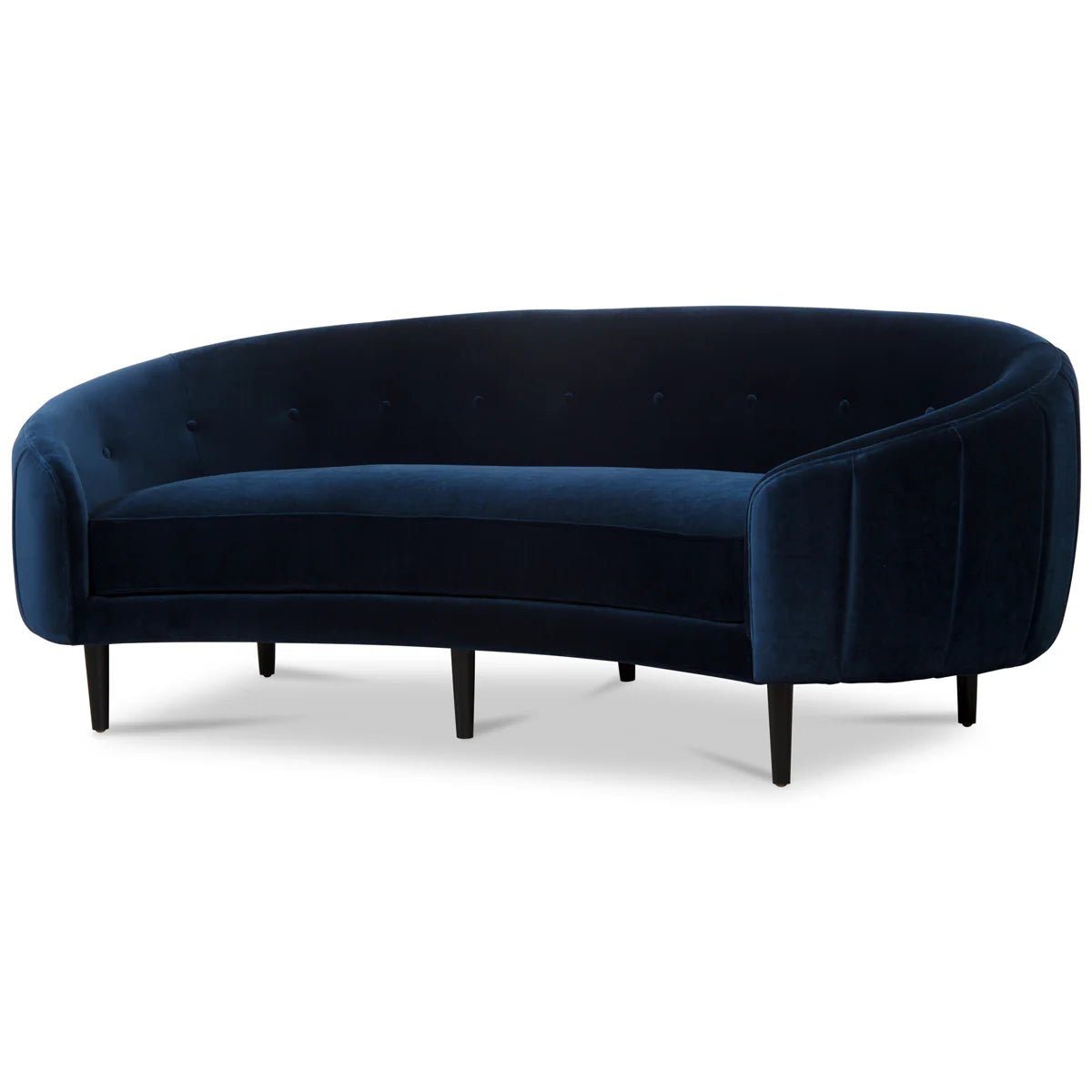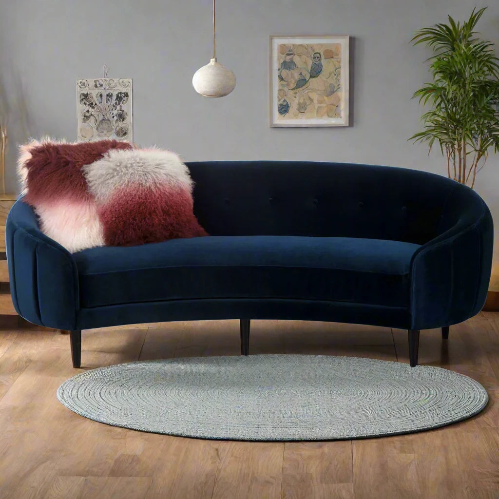 تتميز أريكة لونا كريسنت بتصميمها الأنيق المستوحى من فن الآرت ديكو، حيث تتخذ شكل الهلال وتتميز بأذرع منحنية بشكل لطيف وستة أرجل مخروطية قوية من خشب الجوز، ومطلية باللون الأسود لإضفاء لمسة من الرقي. كما يتميز الجزء الخلفي بحشوة أنيقة تضيف خطوطًا نظيفة ومظهرًا مميزًا. مثالية للمساحات المريحة، توفر هذه الأريكة المدمجة الراحة والسحر، وهي مثالية للديكورات الداخلية الحديثة أو الكلاسيكية.