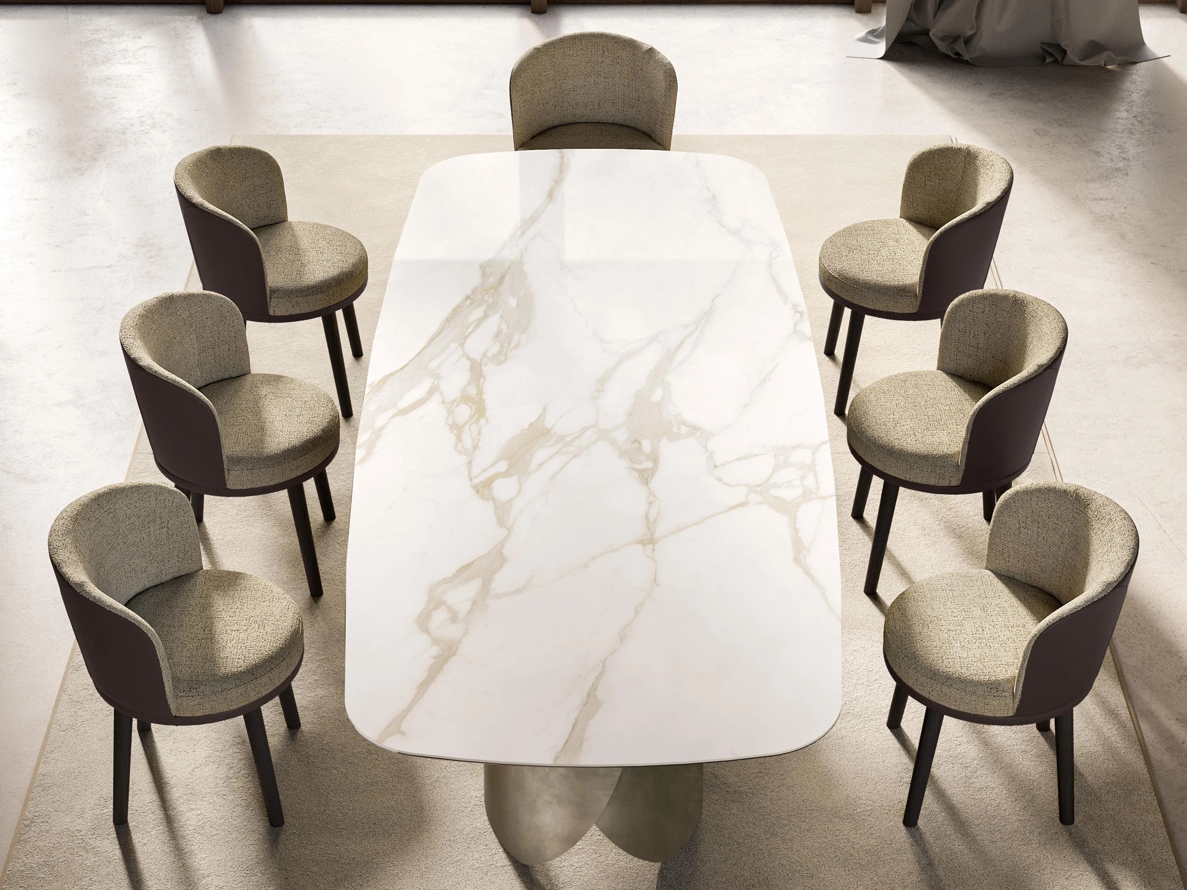 يجمع كرسي Solea ثنائي اللون بين التصميم الأنيق والراحة والأناقة. توفر أرجله الخشبية وتنجيده المصنوع من مادتين لمسة عصرية، مع خيارات من القماش أو الجلد الصناعي أو الجلد. يخلق المزيج المذهل من المقعد المصنوع من القماش الفاتح مع مسند ظهر أغمق تباينًا متطورًا. يتم إبراز الشكل الدائري للكرسي بذراعين من خلال الخياطة اليدوية التفصيلية، مما يضيف إلى مظهره الأنيق.